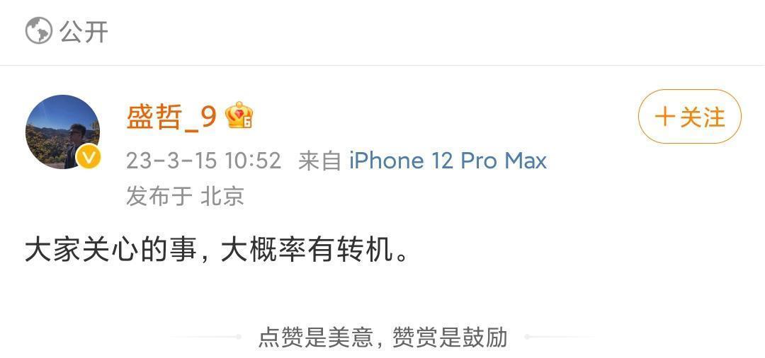 上午10點52分,盛哲通過個人社交媒體對外透露,有關於球迷關心的新疆男籃退出一事,大概率已經出現了轉機,經過自治區籃球管委會、中國籃協和新疆男籃俱樂部三方的商議結果,相互之間也確定了一個折中的方案,籃協主席姚明終於選擇退出,未來很有可能將修改對新疆男籃的處罰決定,而新疆隊因爲退賽引發了巨大的輿論效應,或許還會受到其他方面的一些處罰。