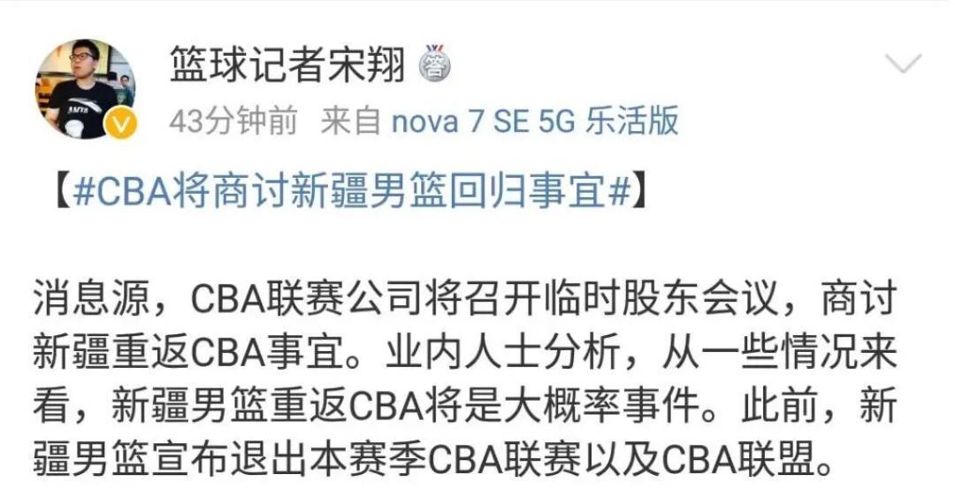 按照官方消息,新疆男籃最快將在3月17日,客場迎戰北京首鋼的比賽中迴歸,看起來CBA聯賽好像又恢復到往日的平靜,但經過新疆男籃這麼一鬧,以及如今他們如此輕鬆就能迴歸,很多人也對中國籃協和CBA公司的公信力產生了質疑,當初新疆男籃氣勢洶洶的發佈公告,選擇用退出的方式對抗中國籃協,如今又只需要用一份申請,就可以輕鬆得重新獲得參賽資格,那麼今後如果有其他球隊對官方的做法感到不滿,是否都可以效仿新疆,用退出作爲要挾呢?