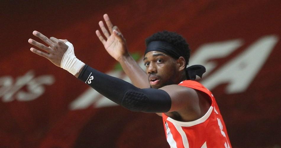 後衛克拉克在底線持球遭到包夾後,將球往半場區域高高拋出,試圖傳給隊友。