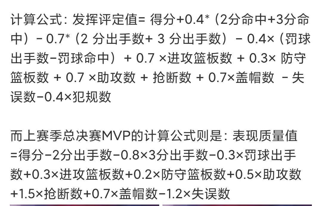 除此之外,官方此次同時公佈了新賽季總決賽MVP的評選辦法,和上賽季一樣,FMVP的獲得者,必須同時兼顧得分、籃板、助攻、搶斷、失誤等多項數據,同時對出手次數、個人犯規次數等,也有嚴格約束,總而言之,這是一條非常複雜的計算公式,有球迷在看到這些評選辦法之後,也忍不住吐槽,稱球員如果想要在新賽季爭奪榮譽,應該先放下手中的籃球,理解透這些公式之後,再去決定如何比賽。