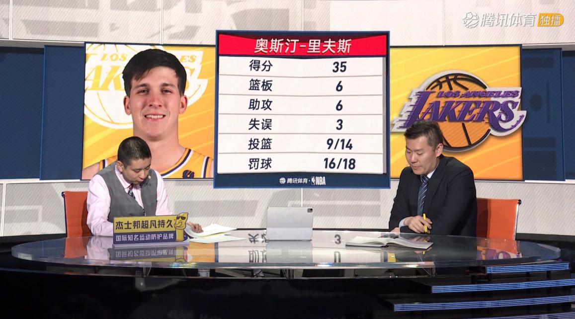 在罰球方面,裏夫斯一共出手18次,全場最高,比濃眉這位巨星球員還多。