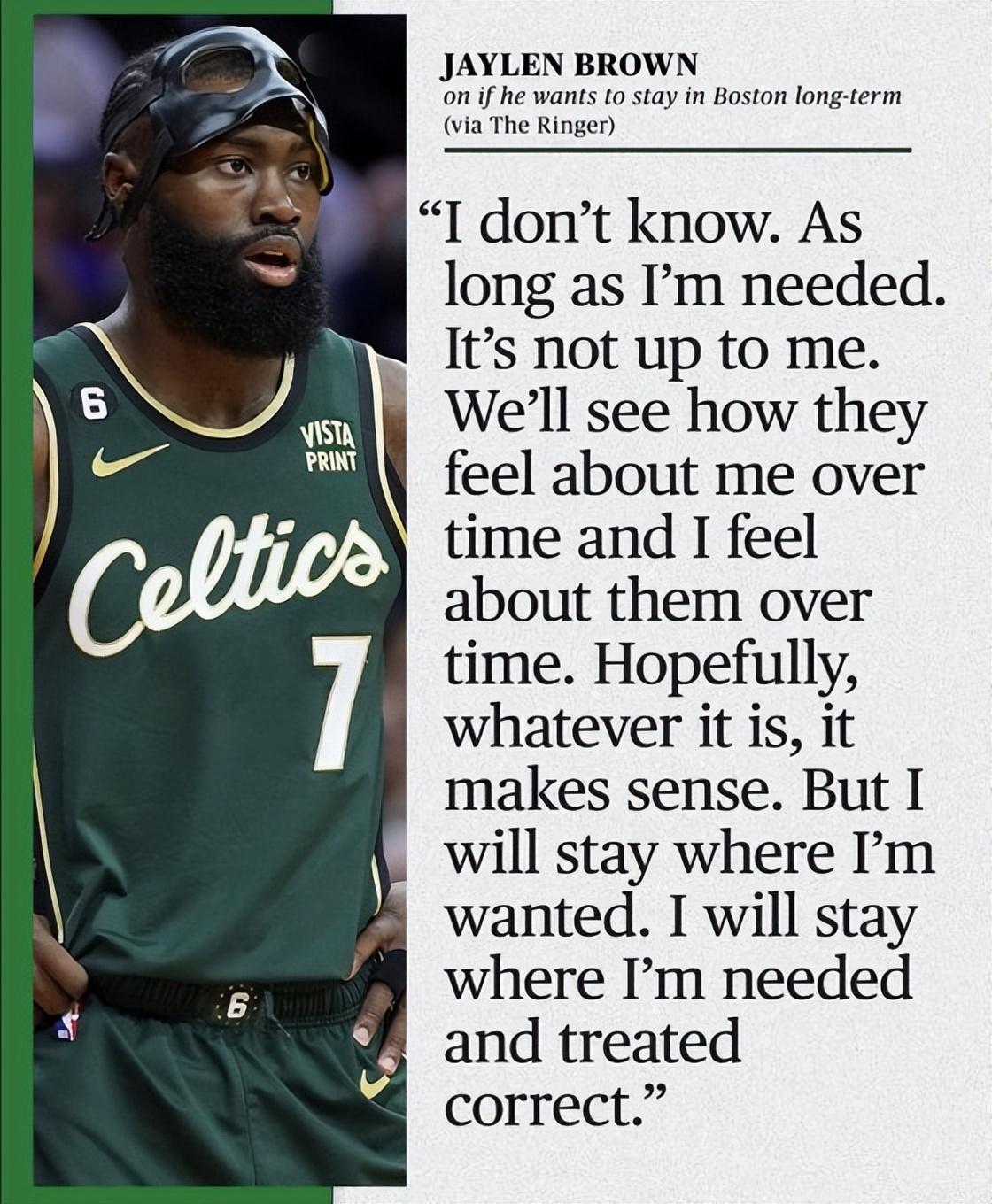 而那句“會留在被正確對待的地方”,則說明布朗不認爲這支凱爾特人在正確對待自己。