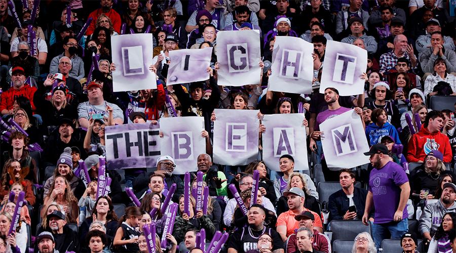 但凡贏球,國王主場黃金1號中心球館就會往天空射出一道紫色激光。