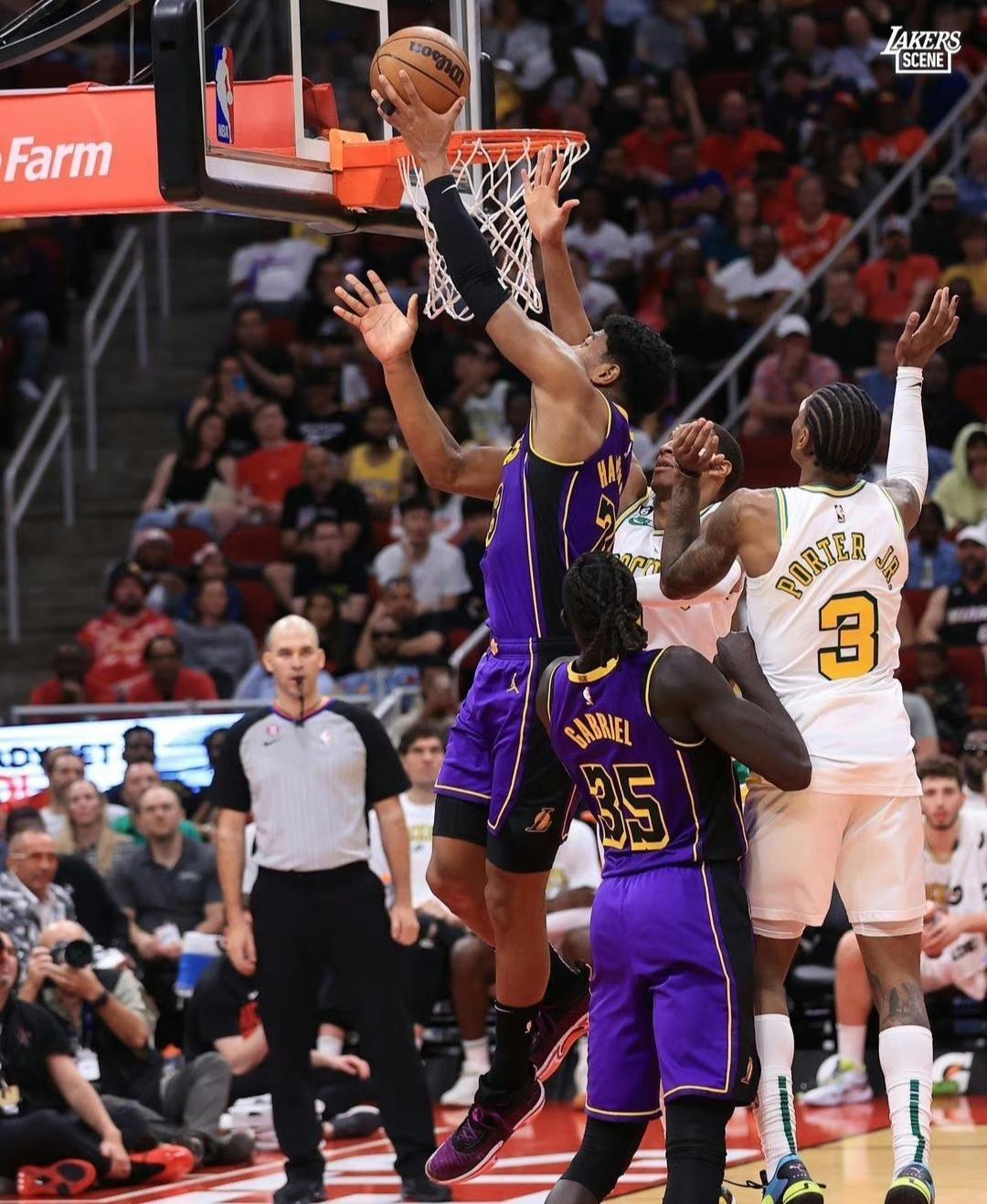 替補出場的八寸壘,同樣有着亮眼的表現,過去幾場被摁在板凳席,很多人都以爲,八寸壘已經遭到了主教練哈姆的棄用,但實際上哈姆只是依據不同的對手,來挑選合適的球員登場,像今天與火箭隊的這場比賽,替補登場的八寸壘,就貢獻了20分12籃板的兩雙數據,同樣爲球隊取勝做出了重要貢獻。