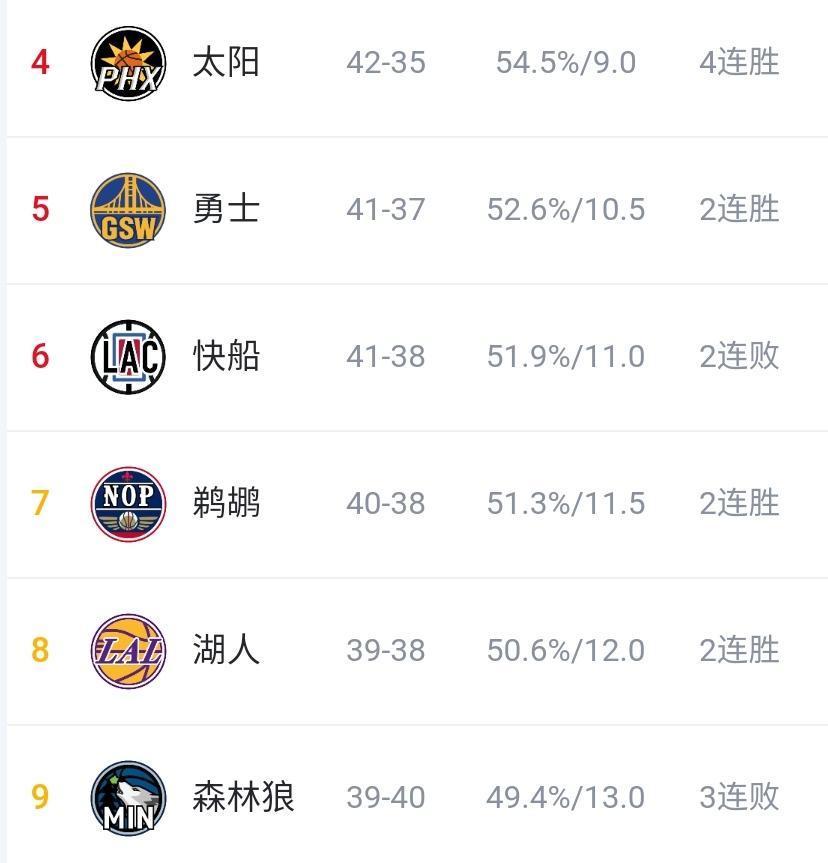 而排在西部第五的金州勇士,目前戰績爲41勝37負,領先湖人隊的優勢也微乎其微,只要湖人在剩餘四輪比賽取得全勝,那麼他們很有可能衝進西部前五,上演驚天大逆轉!