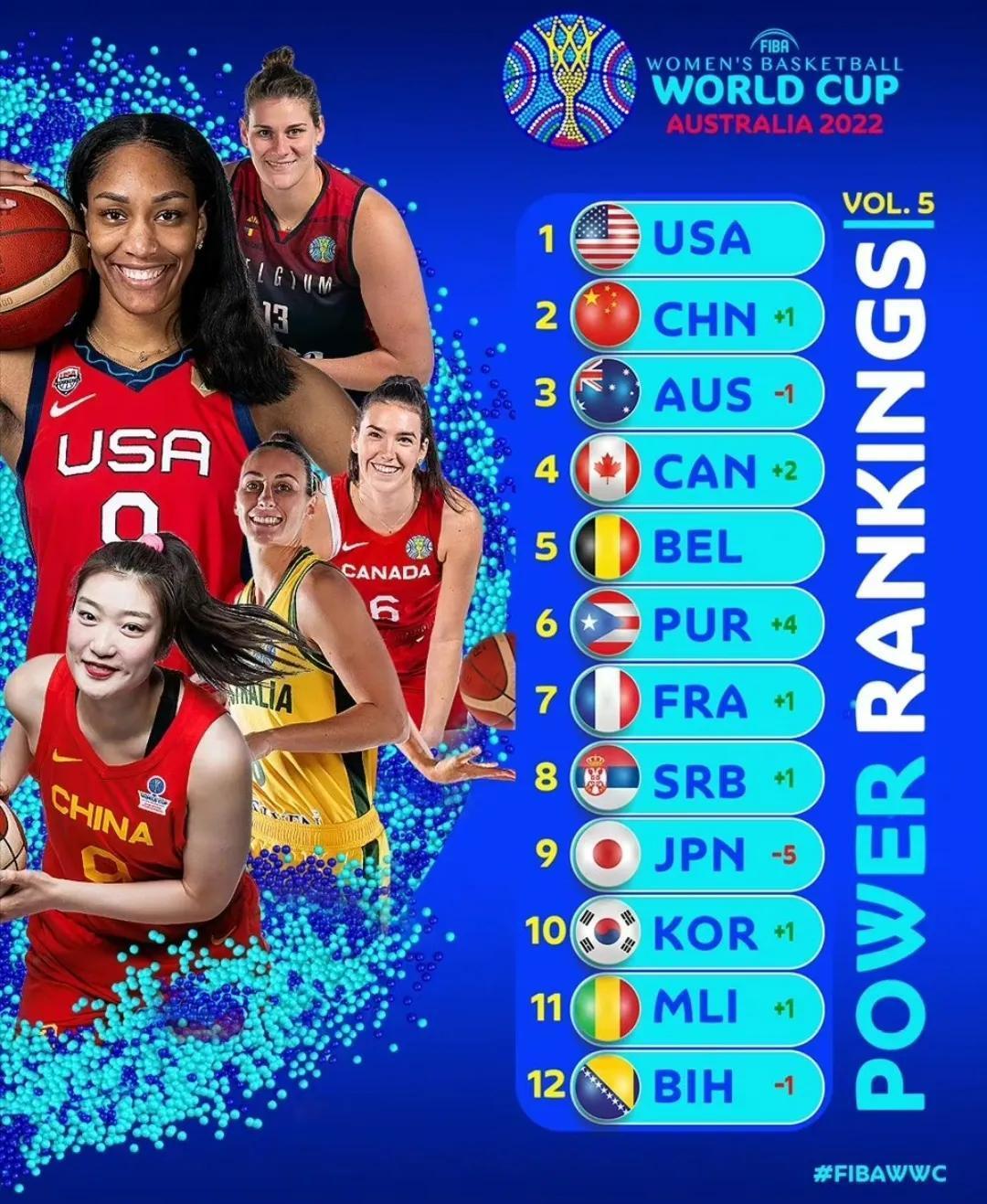 好消息是,趕在淘汰賽開打之前,國際籃聯爲中國女籃送上了一份意外驚喜,在昨天公佈的最新一期世界盃實力榜單上,中國女籃排名繼續上升,僅次於美國女籃高居第二位,如此高的排名位次,也是出乎了絕大多數人的意料之外,能夠得到國際籃聯官方的認可,對於中國女籃隊員的自信心和比賽士氣的提升,都是一次巨大的鼓舞。