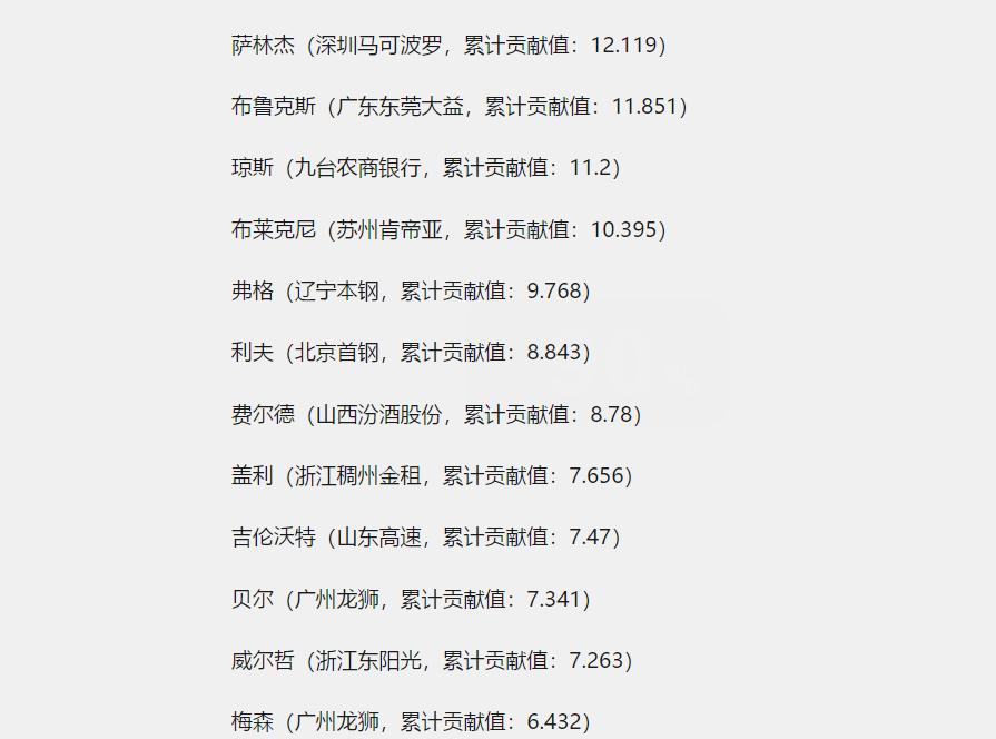 層層篩選過後,目前剩下了12名候選人,按累計貢獻值排名分別是: