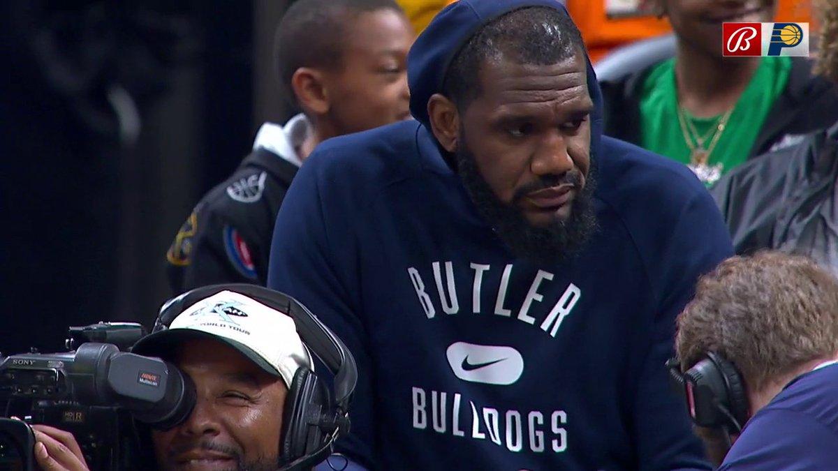 步行者昨天對陣尼克斯的收官戰裏,場邊來了一位熟悉的老朋友。