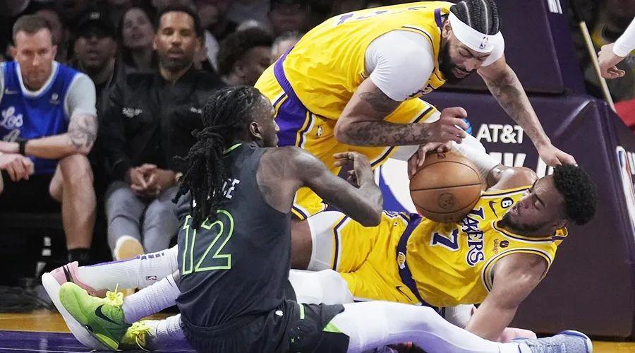 另一部分原因在湖人自己身上。儘管送出了8次助攻而且只有1次失誤,但德安吉洛·拉塞爾9投1中,只得2分的表現依然令人失望;詹姆斯在比賽的前三節所表現出的防守強度完全不像在打一場定勝負的附加賽,被森林狼球員反覆折磨;當“人造吉諾比利”裏弗斯失去了一碰就響哨的超能力之後,他彷彿成爲了12點後的灰姑娘;沒有戈貝爾,森林狼對濃眉進行了堅決的夾擊,而湖人對此明顯準備不足,隊友沒給到他足夠的支援,在空切時還出現了大量的失誤。
