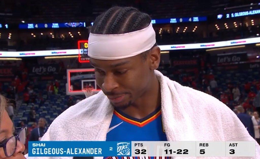 技術統計方面,亞歷山大32分5籃板,吉迪31分9籃板10助攻,多爾特27分5籃板;
