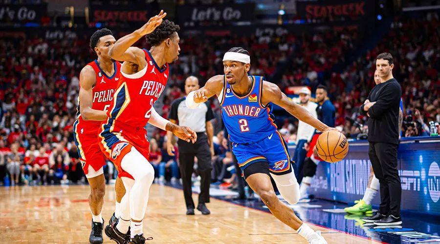英雄的登場總需要鋪墊,亞歷山大在上半場10中3,只拿到7分,這裏固然有他手感不佳的因素,拿手的急停回拉跳投幾乎三不沾,但鵜鶘對他的針對性防守如影隨形,就像戴格諾特所說:“整個賽季,他們是包夾亞歷山大最多的球隊。”