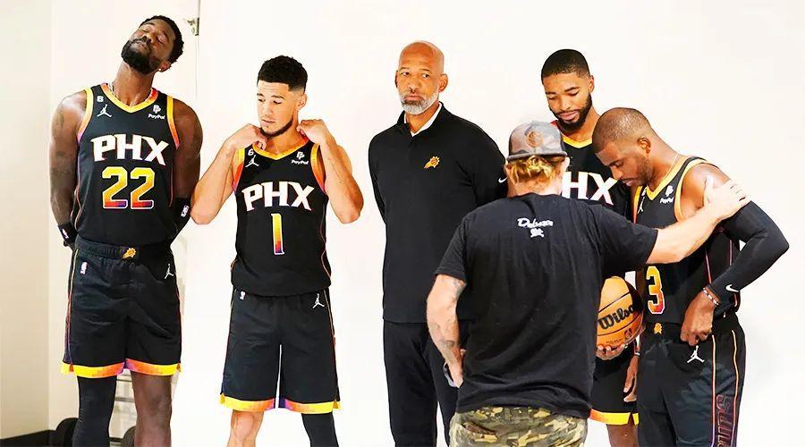 在整個媒體日上,太陽隊的核心球員們臉上毫無笑意。這非常好理解,如果記者們一直追問你“你們爲什麼在2比0領先之後越來越難看地慘敗給達拉斯”、“蒙蒂和艾頓之間到底咋回事”、“保羅和布克爲啥在關鍵時刻沒站出來”、“怎麼看球隊想用你換杜蘭特的交易流言”、“克勞德爲啥沒來參加訓練營”以及“你們老闆到底是不是種族歧視和厭女症患者”,你也很難笑得出來。
