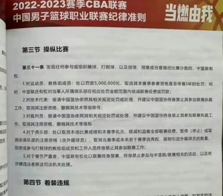 只不過,一些球迷在看到中國籃協的這份公告時,都在質疑官方所說的“消極比賽”到底是什麼,究竟是不是球迷口中所說的打假球呢?其實,從本賽季的CBA聯賽紀律準則第三節中,就已經給出了球迷朋友一份答案,依照這條規則,發現任何參與或組織賭球、打假球,以及致使、授意或合意操縱比賽分數的,中籃聯有權處以罰款500萬元,並取消其本賽季參賽資格直至停賽5年的處罰。