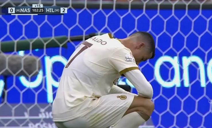 沙特聯賽第25輪,利雅得德比,中超舊將伊哈洛點球梅開二度,C羅全場0射正+鎖喉染黃,最終利雅得勝利客場0-2不敵利雅得新月,延續2輪不勝。