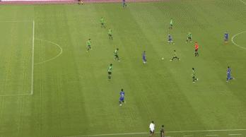 開場第9分鐘,韋世豪浪費了一個單刀機會。這一球存在越位嫌疑,但對於國腳來說這種機會起碼要把球送進球門。