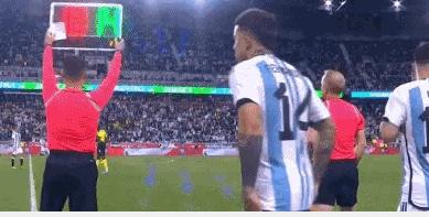 第55分鐘, 阿根廷連換2人,梅西和恩佐-費爾南德斯上場,換下羅德里格斯和勞塔羅。