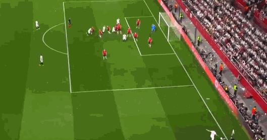 這樣的失球自然是對全隊士氣的極大打擊,滕哈赫半場換下同樣低迷的桑喬和萬-比薩卡,傷愈的拉什福德和盧克·肖出場。但下半場塞維利亞還是取得了閃電進球,開場僅2分鐘拉基蒂奇開出角球,這次輪到林德洛夫漏頂,讓身後的塞維利亞後衛巴代頭球擊中橫樑入網。巴代的頭球吊射的確過於刁鑽,但德赫亞因爲站位不佳,在這次防守之中也是頗爲狼狽。