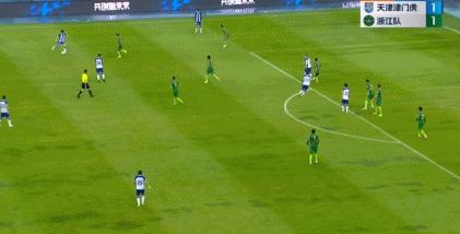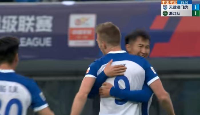 第26分鐘,浙江隊後場出球送禮,王秋明助攻貝里奇低射破門,天津津門虎扳平1-1。