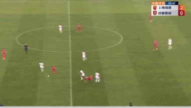 第40分鐘,成都蓉城隊長劉濤回傳失誤,武磊搶斷後挑射破門,幫助上海海港帶着2-0的領先優勢回到更衣室。