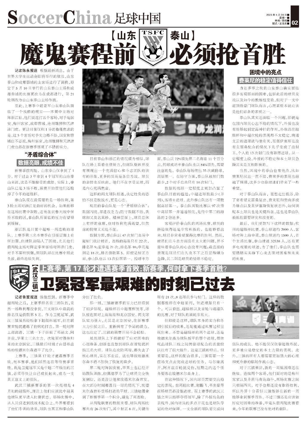 泰山隊現在最需要的是一場勝利,第3輪主場對浙江是最好的機會,如果能夠在這場比賽中取勝,進而在京魯大戰中保持不敗的話,泰山隊所面臨的壓力有望得到緩解。