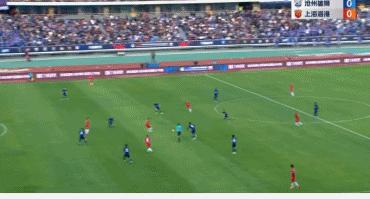 第45分鐘,奧斯卡挑傳,滄州後衛楊雲解圍失誤,武磊轉身凌空抽射破門,上海海港取得1-0領先。