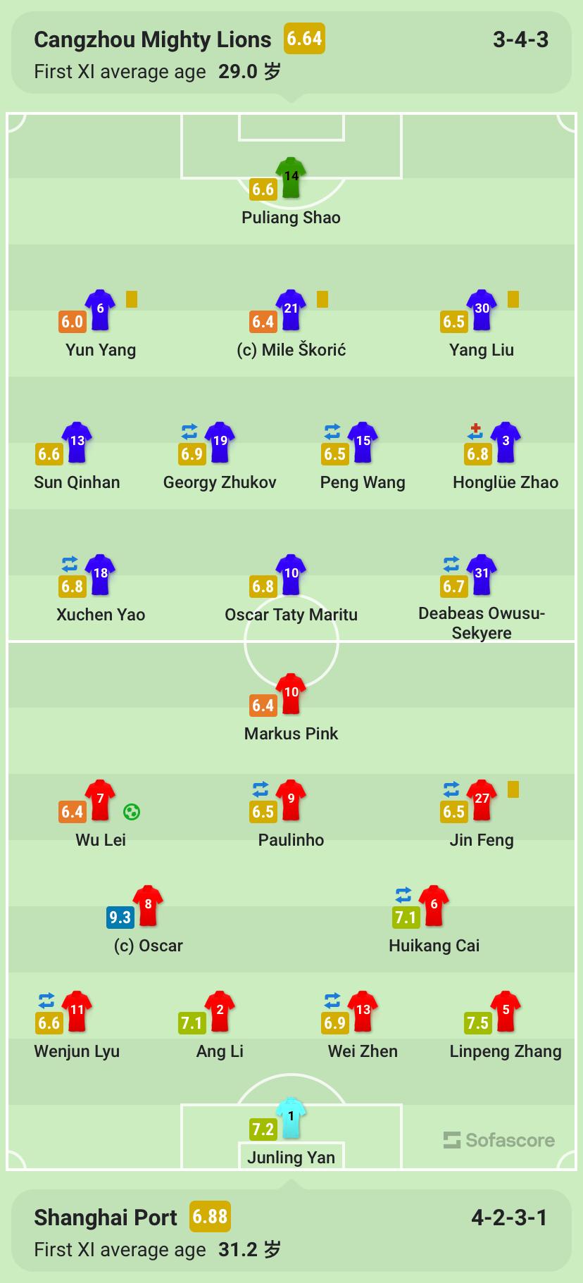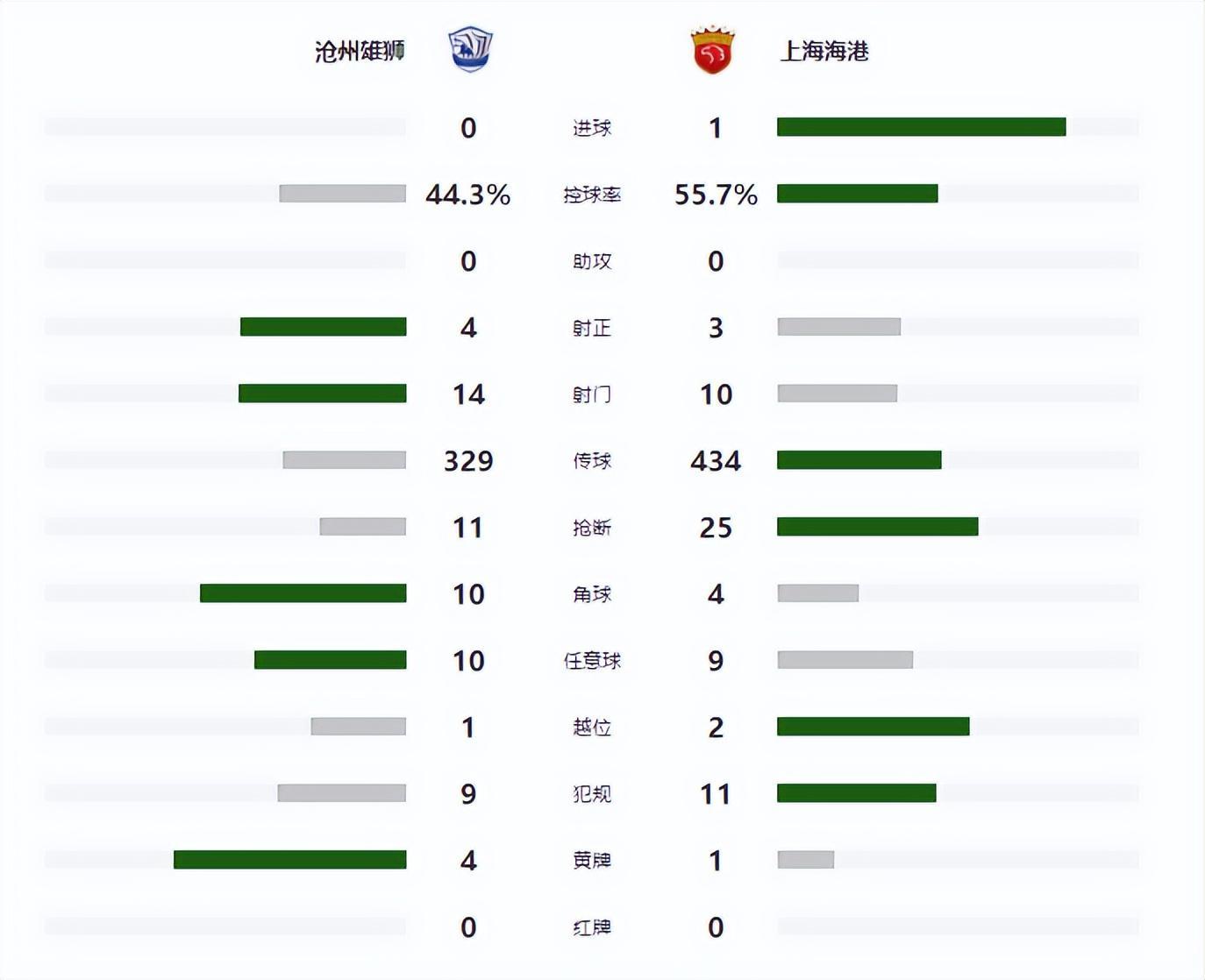 此後,雙方均無法再次改寫比分,最終上海海港客場1-0擊敗滄州雄獅。
