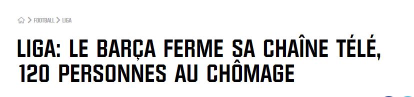據報道,巴薩將於6月30日關閉俱樂部官方頻道BarçaTV,屆時將會有120人失業。