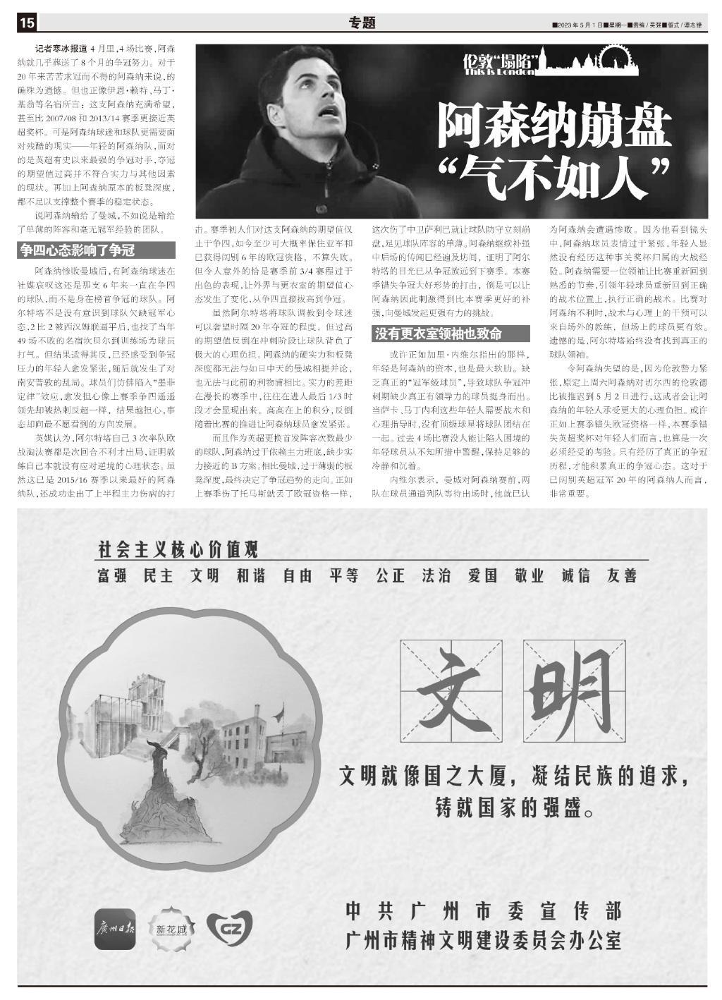 記者寒冰報道 4月裏,4場比賽,阿森納就幾乎葬送了8個月的爭冠努力。對於20年來苦苦求冠而不得的阿森納來說,的確殊爲遺憾。但也正像伊恩·賴特、馬丁·基翁等名宿所言:這支阿森納充滿希望,甚至比2007/08和2013/14賽季更接近英超獎盃。可是阿森納球迷和球隊更需要面對殘酷的現實——年輕的阿森納隊,面對的是英超有史以來最強的爭冠對手,奪冠的期望值過高並不符合實力與其他因素的現狀。再加上阿森納原本的板凳深度,都不足以支撐整個賽季的穩定狀態。