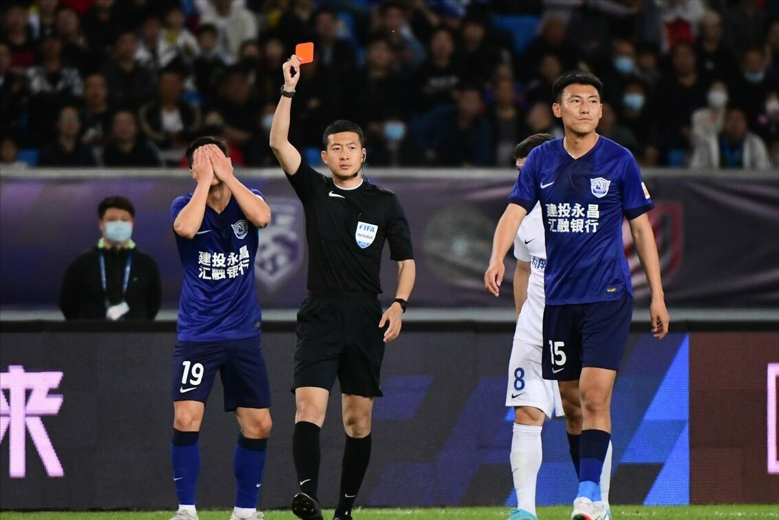 讓人意外的是,開場僅僅12分鐘,朱可夫就被紅牌罰下,當時他背後剷球鏟在了徐駿敏的腳踝上,主裁判張雷先是出示了黃牌,隨後在VAR的提醒下到場邊觀看了視頻回放,最終更改爲紅牌,朱可夫被直接罰下。