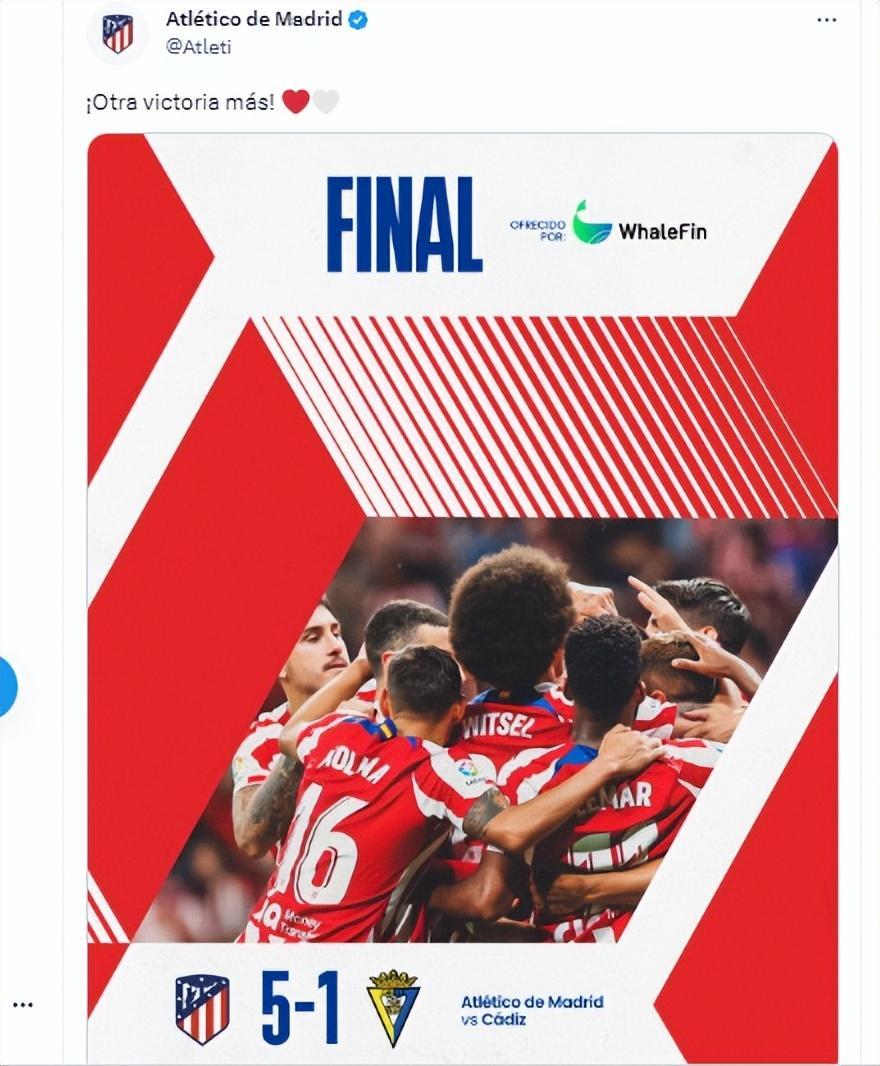 西甲第33輪,格列茲曼雙響,莫拉塔、卡拉斯科和莫利納各建一功,最終馬競主場5-1大勝加的斯,取得聯賽3連勝。因爲皇馬本輪客場0-2不敵皇家社會丟掉3分,所以現在馬競以1分優勢反超皇馬,上升至西甲第2的位置。