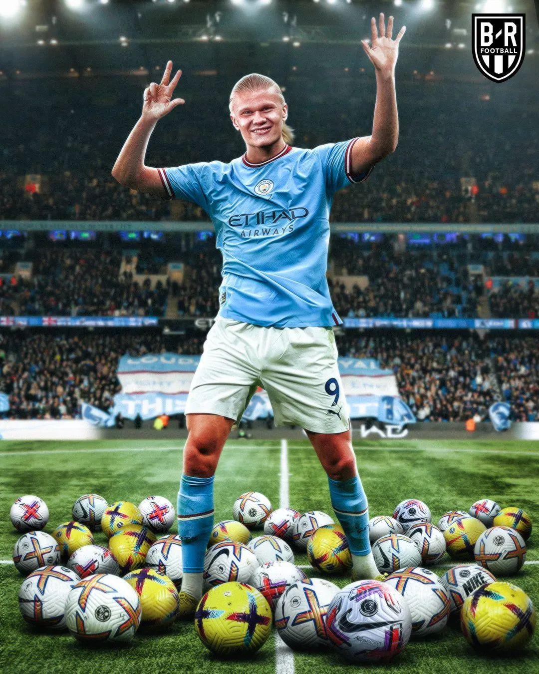 2023年度,哈蘭德24場24球5助攻,場均貢獻1球。英國媒體已在預測他是否能向C羅(2013年,69球)和梅西(2012年,91球)的自然年進球紀錄發起衝擊。鑑於哈蘭德所在的挪威隊實力孱弱,2023年又不是大賽年,他在國家隊的進球刷數據可能會受到極大影響。但在俱樂部,以曼城目前的強大班底,只要哈蘭德能夠保持穩定的健康狀態,恐怕像梅羅一樣賽季進球50+達到6次以上並非難事。
