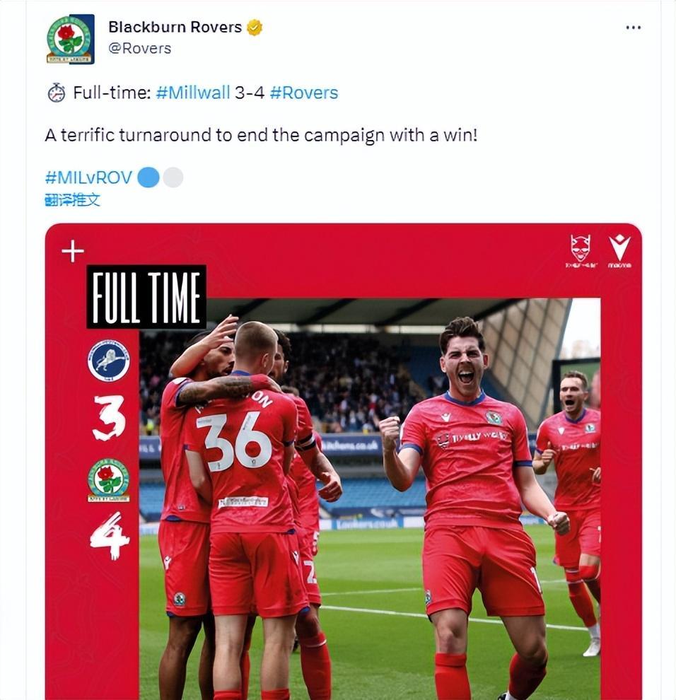 結果呢,米爾沃爾竟然在3-1領先的情況下被布萊克本連進3球完成絕殺翻盤,最終從聯賽第6跌至第8。很遺憾,完成神奇逆轉的布萊克本也被堵在了聯賽前6之外,因爲排在他們身前的桑德蘭在收官戰中客場3-0輕取普雷斯頓,最終桑德蘭以15個淨勝球優勢壓哨進入了聯賽前6,拿到了一個升級附加賽資格。