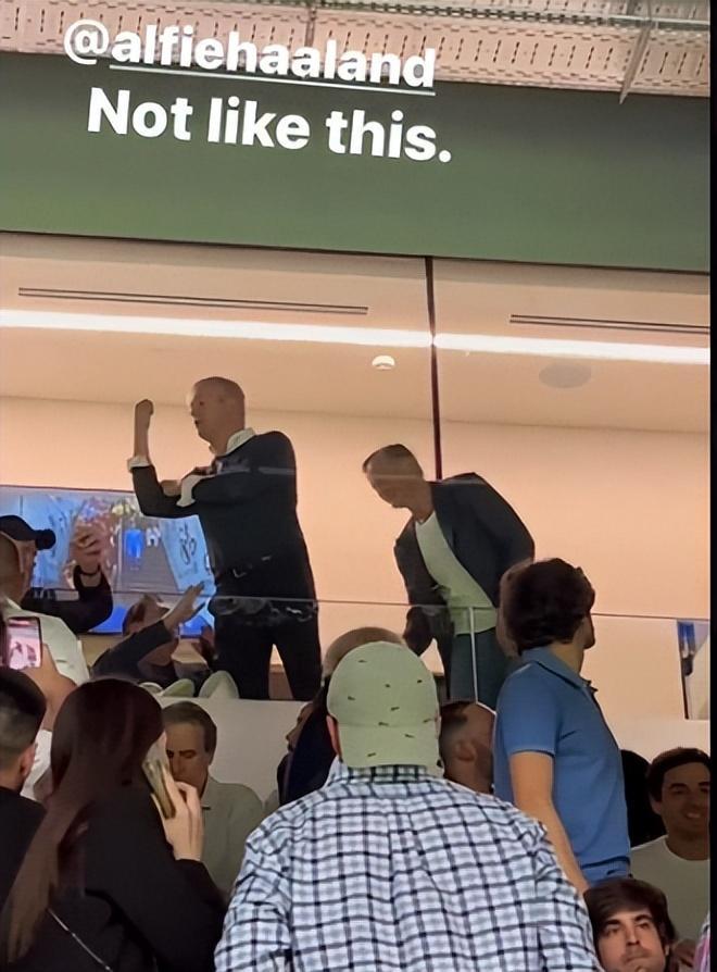 據瞭解,哈蘭德父親不但向皇馬球迷做出“打傘”的挑釁手勢,還往皇馬球迷身上扔食物。在被安保人員請出去之前,哈蘭德父親先是做出讓對方閉嘴的手勢,最後又把手放在耳朵上傾聽他們發出了巨大噓聲,並讓對方的罵聲再來得猛一些。