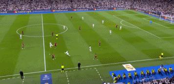 在上半場,皇馬在被曼城全面壓制的情況下踢得不慌不忙,最終在第36分鐘利用客串踢左後衛的卡馬文加左路帶球奔襲到前場,助攻維尼修斯打進一記世界波。皇馬整個上半場1次射門,只有31%的控球率,但他們能帶着1-0領先的優勢回到更衣室。