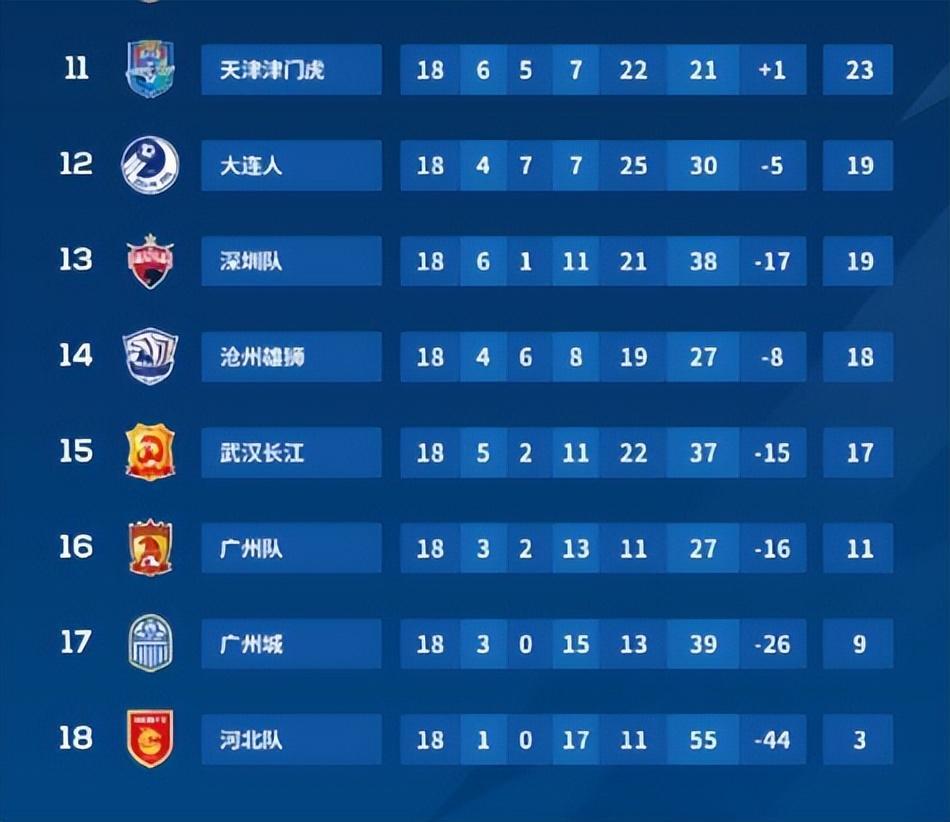 武漢長江2場補賽全部,近6輪輸掉5場只拿到1分,現在他們已經逼近降級區了。
