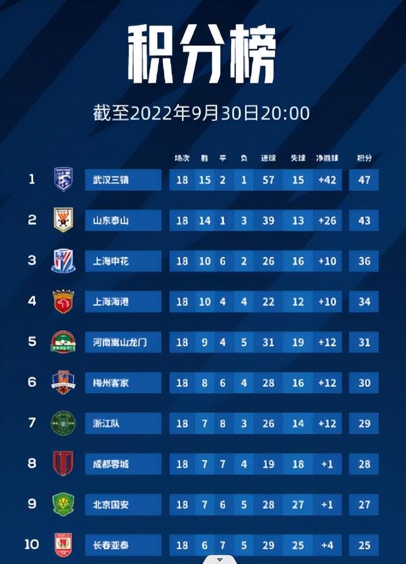 2場補賽全勝的上海海港衝上了中超第4。雖然跟身前的上海申花只有2分的差距,但他們仍然落後榜首球隊武漢三鎮13分,爭冠希望不大。