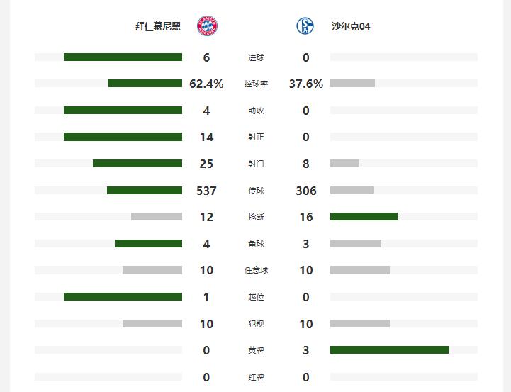 此後,雙方都無法再次改寫比分,最終拜仁主場6-0大勝沙爾克。