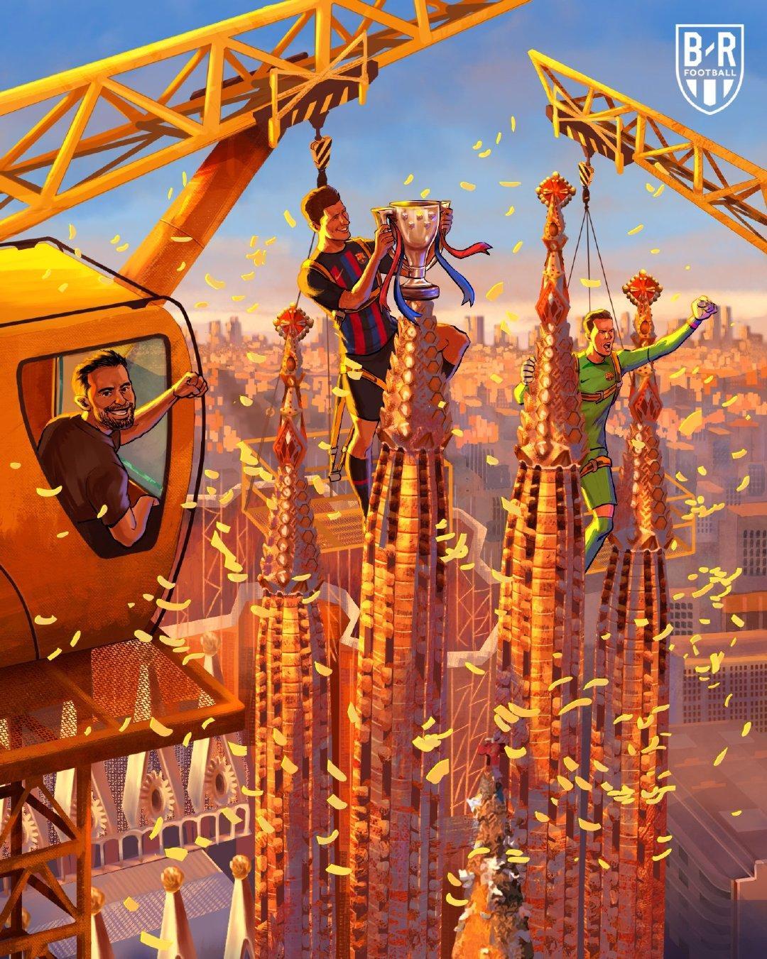週一,巴薩將從諾坎普球場開始,一直到凱旋門進行冠軍花車巡遊,慶祝巴薩男足和女足包攬聯賽冠軍。經歷了長達3年的壓抑,巴薩球迷可以充分釋放自己的激情。事實上,在昨晚的巴塞羅那市區街道,巴薩球迷已提前開始了狂歡慶祝。奪冠後,巴薩的死敵皇馬也發出了官方慶祝信息,就像1周前皇馬奪得國王杯冠軍後巴薩發出祝賀一樣“禮尚往來”。不過,加泰羅尼亞媒體更在意的還是:這個獎盃意味着哈維帶領的巴薩復興已經開始,新賽季的巴薩令人充滿期待。