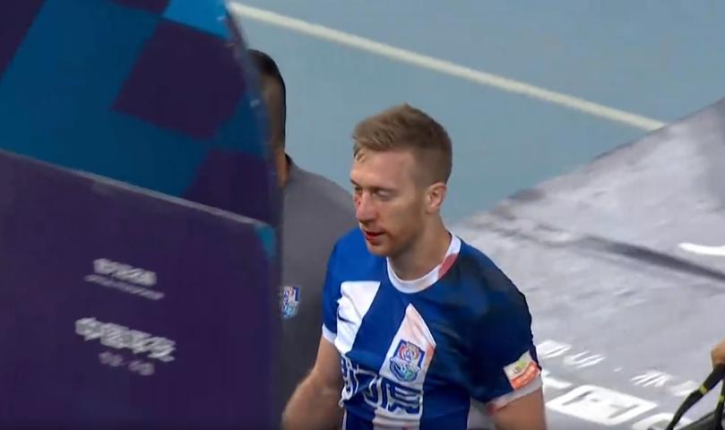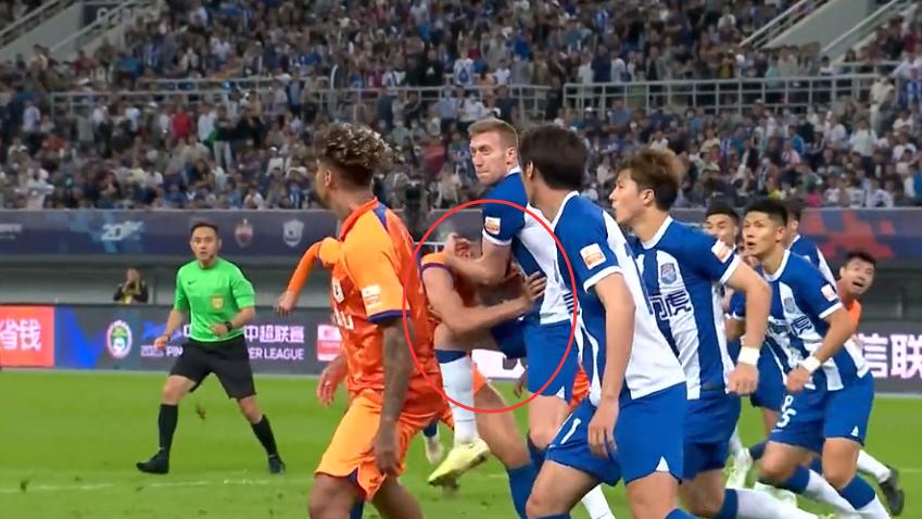 但是,在全場哨聲響起後,津門虎前鋒貝里奇倒在了禁區裏面,並痛苦捂臉。主裁判劉威通過VAR的口中才得知,原來是泰山中衛賈德松一拳打在了貝里奇的臉上,貝里奇滿口鮮血並出現了鼻樑骨折的情況。當然,這一次衝突雙方都有手部動作,從慢鏡頭看來貝里奇還有抱摔和頂膝的動作。
