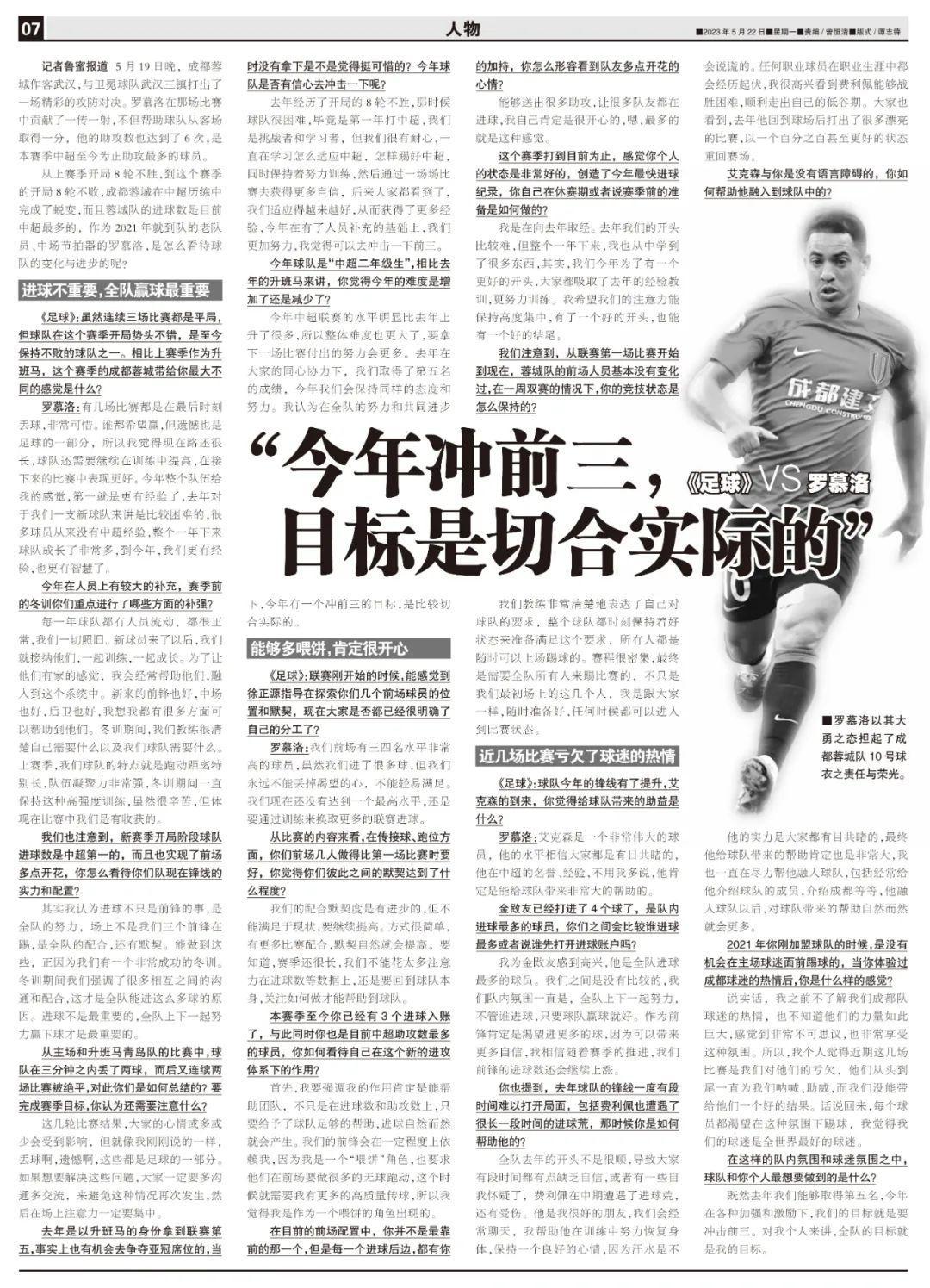 ◆《足球》:雖然連續三場比賽都是平局,但球隊在這個賽季開局勢頭不錯,是至今保持不敗的球隊之一。相比上賽季作爲升班馬,這個賽季的成都蓉城帶給你最大不同的感覺是什麼?