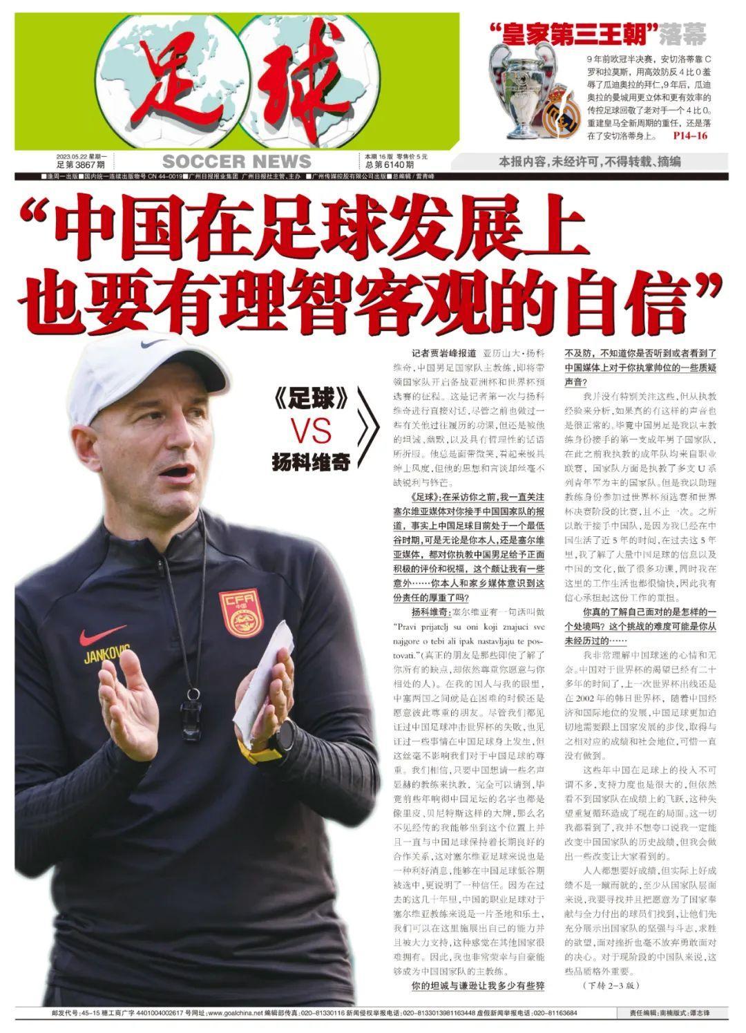 記者賈巖峯報道 亞歷山大·揚科維奇,中國男足國家隊主教練,即將帶領國家隊開啓備戰亞洲盃和世界盃預選賽的征程。這是記者第一次與揚科維奇進行直接對話,儘管之前也做過一些有關他過往履歷的功課,但還是被他的坦誠、幽默,以及具有哲理性的話語所折服。他總是面帶微笑,看起來極具紳士風度,但他的思想和言談卻絲毫不缺銳利與鋒芒。