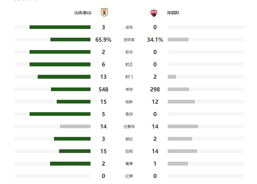 此後,雙方都無法再次改寫比分,最終山東泰山主場3-0大勝深圳隊。
