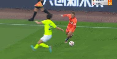 第4分鐘,克雷桑下底倒三角橫傳,造成楊博宇自擺烏龍,山東泰山1-0領先。