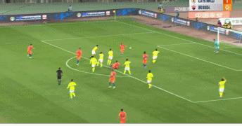 第65分鐘,陳蒲禁區外圍右側內切起腳打門,皮球高出了橫樑。