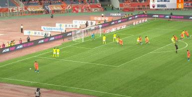 第56分鐘,鄭錚開出前場左側定位球,克雷桑頭球衝頂破門,山東泰山擴大比分至2-0。