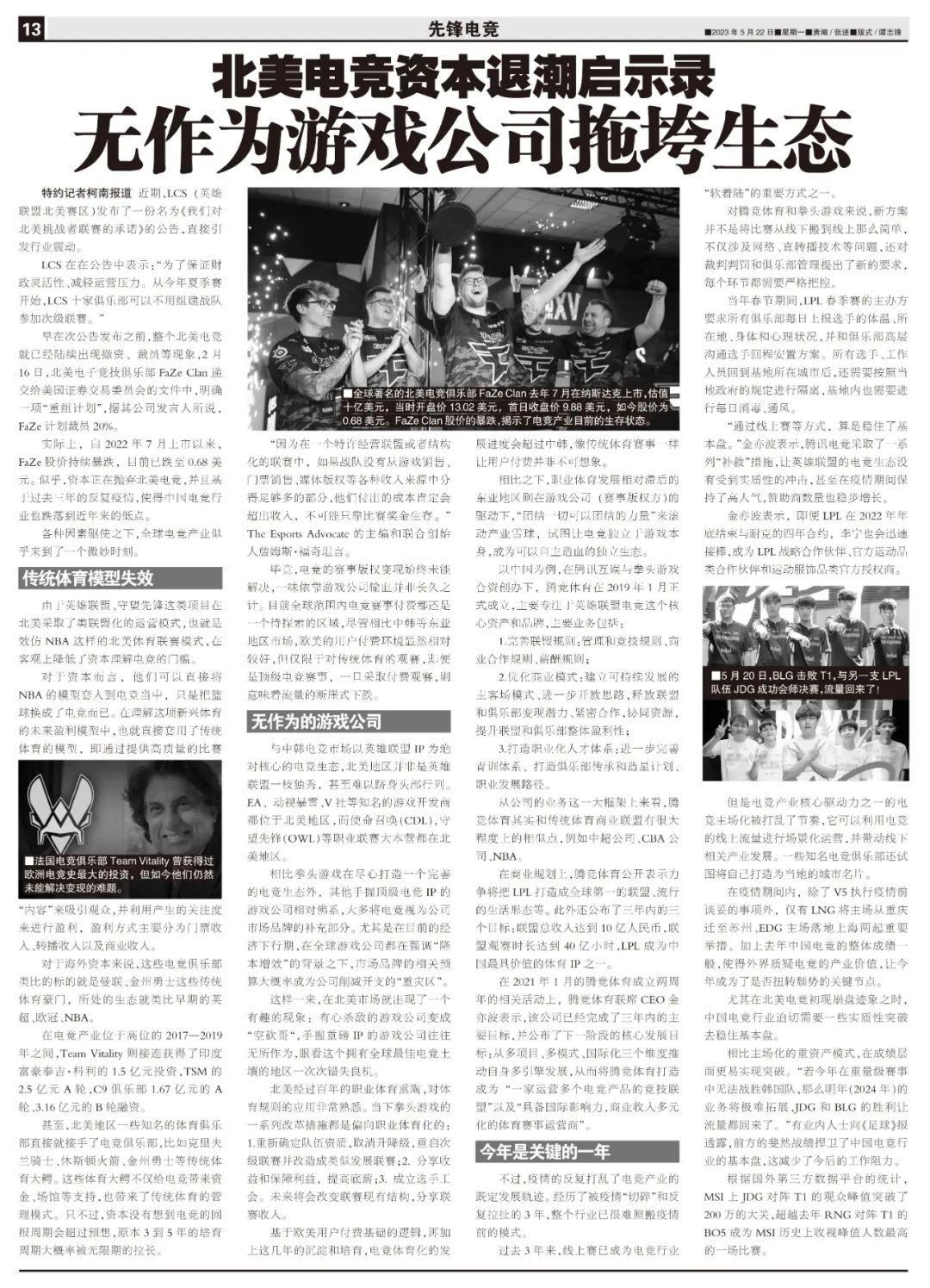 早在公告發布之前,整個北美電競就已經陸續出現撤資、裁員等現象,2月16日,北美電子競技俱樂部FaZe Clan遞交給美國證券交易委員會的文件中,明確一項“重組計劃”,據其公司發言人所說,FaZe計劃裁員20%。