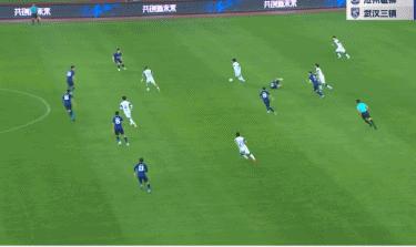 第53秒鐘,謝鵬飛前場搶斷後把球交給了韋世豪,後者在禁區前沿拿球轉身抽射破門,武漢三鎮1-0領先。