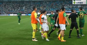 包括王子銘在內的國安多名球員,從替補席中衝進了球場,欲找張佳祺算賬。首當其衝的是王子銘,如果不是埃弗拉第一時間把他抱住,看着這態勢,真的有可能打起來。