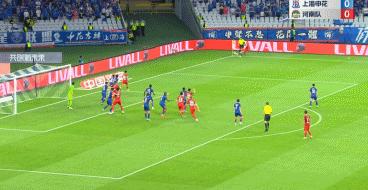 第82分鐘,曹贇定左路傳中,王國明跟楊帥出現溝通問題導致出擊失誤,蔣聖龍頭球破門,上海申花扳平比分1-1。
