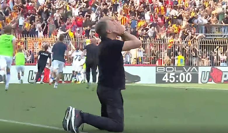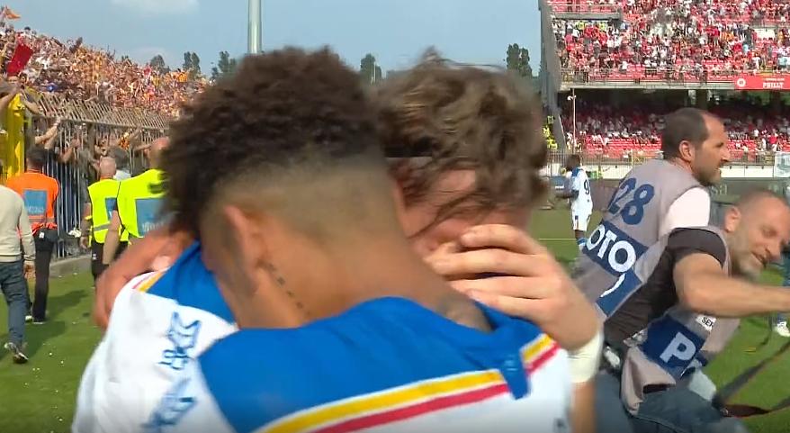 在洛倫佐·科隆博罰進這個絕殺點球后,萊切全隊瘋狂慶祝如奪冠。替補席上的球員和教練組成員,跟進球功臣洛倫佐·科隆博一起翻過廣告牌,跟遠征軍一起慶祝,而主帥巴羅尼則跪地捂臉哭泣,還有球員相擁而泣,這畫面令人動人。